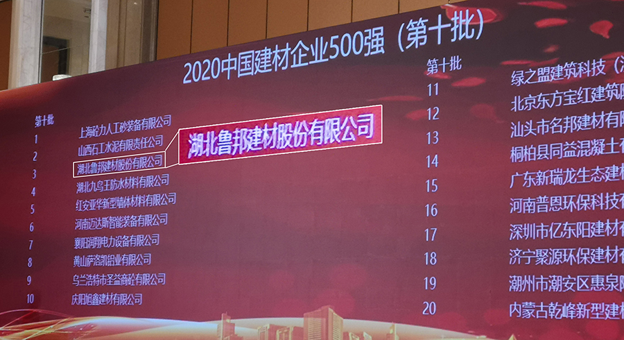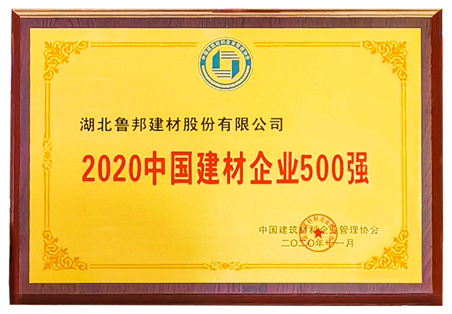湖北魯邦建材股份有限公司榮獲“中國(guó)建材企業(yè)500強(qiáng)”稱號(hào)。