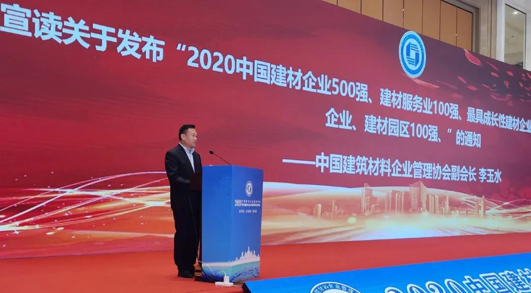 中國(guó)建筑材料企業(yè)管理協(xié)會(huì)副會(huì)長(zhǎng)李玉水宣讀關(guān)于發(fā)布2020中國(guó)建材企業(yè)500強(qiáng)等獎(jiǎng)項(xiàng)的通知