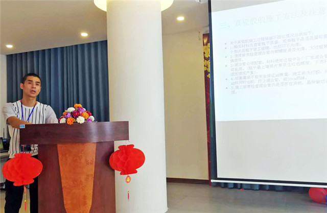 技術(shù)部劉軼麟先生在會上對公司原有產(chǎn)品的改良做了詳細(xì)的講解說明,同時發(fā)布了新的產(chǎn)品,還對各種產(chǎn)品施工的細(xì)節(jié)與大家做了交流探討。